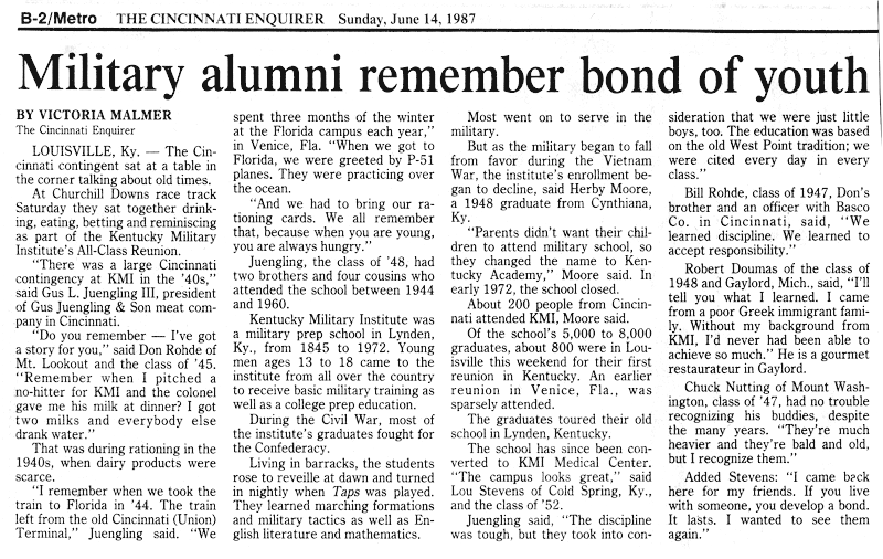 [Details supplied by Gerry Brinker, '59]
