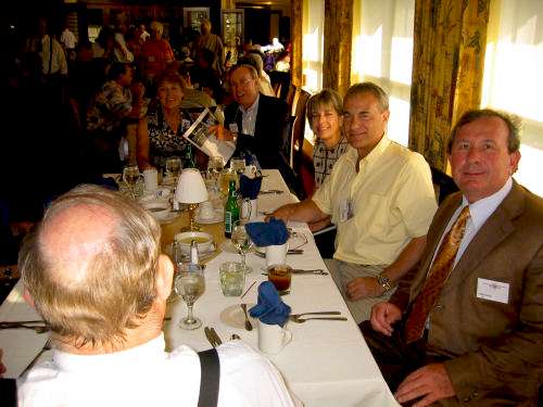 Ann and Bob Hays '63, Susan Kirk's empty seat, Bill Kirk '63, Dave Disher 68-60 x' 63, Mike Lande (Gilman) '62, Frank '63 and Mary Lively. |